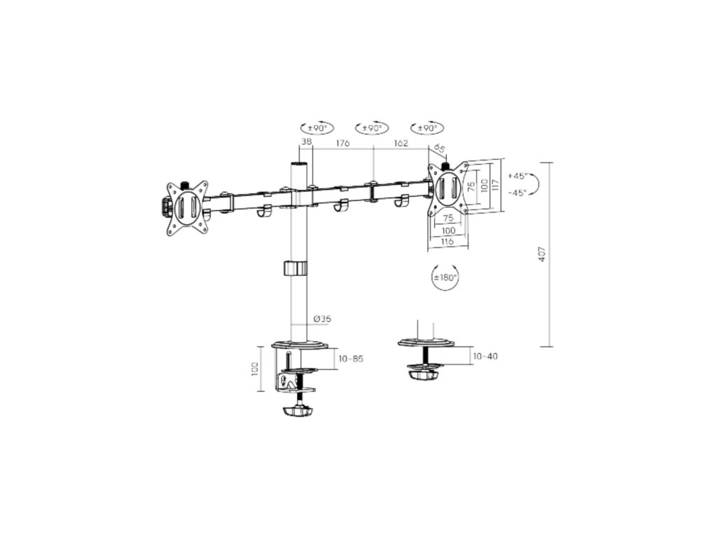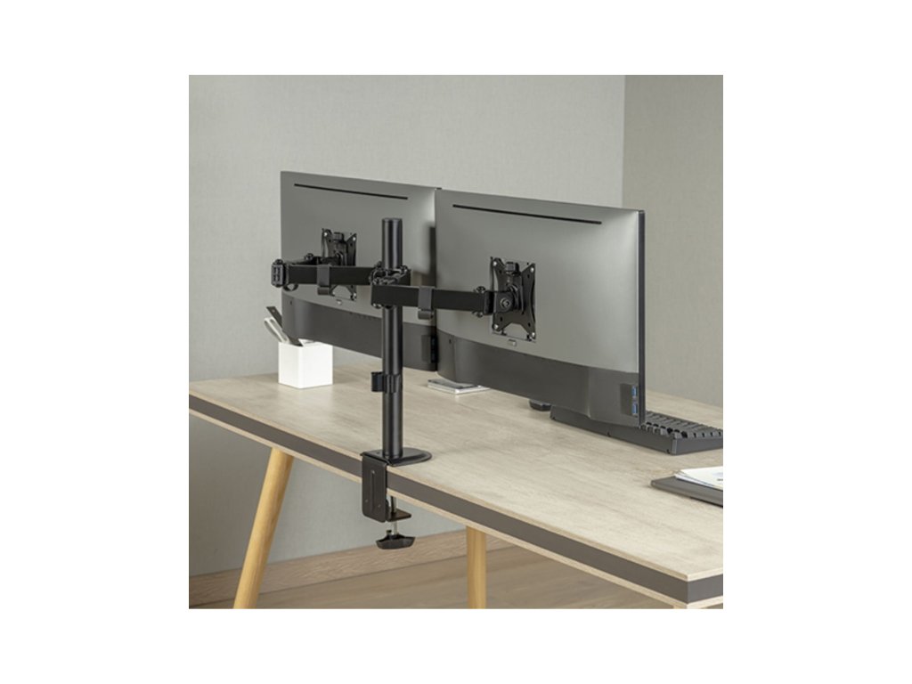 Držák monitoru Brateck LDT66-C024 je inovativní stolní držák, který byl navržen s ohledem na vaše potřeby a zlepšení pracovního prostoru. Tento všestranný stolní držák je ideální pro použití s různými typy monitorů, ať už pracujete z domova, v kanceláři nebo ve vzdělávacím prostředí. S držákem monitoru Brateck se vaše pracoviště stane efektivnějším a pohodlnějším.Díky odolné ocelové konstrukci poskytuje stabilní podporu pro dva monitory s úhlopříčkou 17" až 32" a hmotností až 9 kg na rameno. Flexibilní konstrukce pro dostatečné nastavení výšky a pozorovacích úhlů s možností nastavení orientace monitoru na výšku nebo na šířku. Součástí balení jsou průchodky a svorky pro instalaci na téměř jakoukoliv pracovní plochu. Odnímatelná deska VESA pro uživatelsky přívětivou instalaci. Součástí balení jsou kabelové spony pro usnadnění organizace vedení kabelů.Hlavní vlastnosti:• Flexibilní nastavení polohy: Držák umožňuje snadné nastavení výšky, nastavitelný náklon monitoru v úhlu +/- 45°, otočení monitoru o 360°, nastavení úhlů ramen o 270° (3 závěsy po 90° na každém rameni) takže můžete snadno najít optimální pozici pro pohodlné a ergonomické používání. Odnímatelná deska VESA umožňuje snadnou instalaci monitoru. • Jemné nastavení výšky VESA desek umožňuje precizní zarovnání výšky obou monitorů pro bezproblémový zážitek z prohlížení vedle sebe. • Univerzální kompatibilita: Tento stolní držák je kompatibilní s většinou monitorů o velikosti od 17" do 32" palců a s VESA standardy 75x75mm a 100x100mm. Nezáleží na tom, zda používáte LCD, LED nebo OLED monitor, držák monitoru Brateck poskytne bezpečné a stabilní uchycení.• Odolná konstrukce: Držák je vyroben z vysoce kvalitního materiálu, který zajišťuje stabilitu a odolnost.• Snadná instalace: Držák je dodáván s kompletním montážním příslušenstvím, díky němuž je možné ho snadno namontovat na stůl během několika minut. Snadná montáž pomocí svorky na desky o tloušťce 10-85 mm nebo pomocí průchodky na desky o tloušťce 10-40 mm.Přednosti:• Zlepšuje ergonomii a pohodlí při práci s monitorem• Ušetří místo na vašem stole a pomůže udržovat věci organizované• Kompatibilní s širokou škálou monitorů a velikostí• Robustní a stabilní konstrukce pro dlouhodobé používáníUžijte si optimální pracovní prostředí a zvyšte svoji produktivitu používáním držáků monitorů Brateck. Díky nastavitelnosti a univerzální kompatibilitě vám tento produkt nabídne skvělý zážitek při práci na vašem počítači.