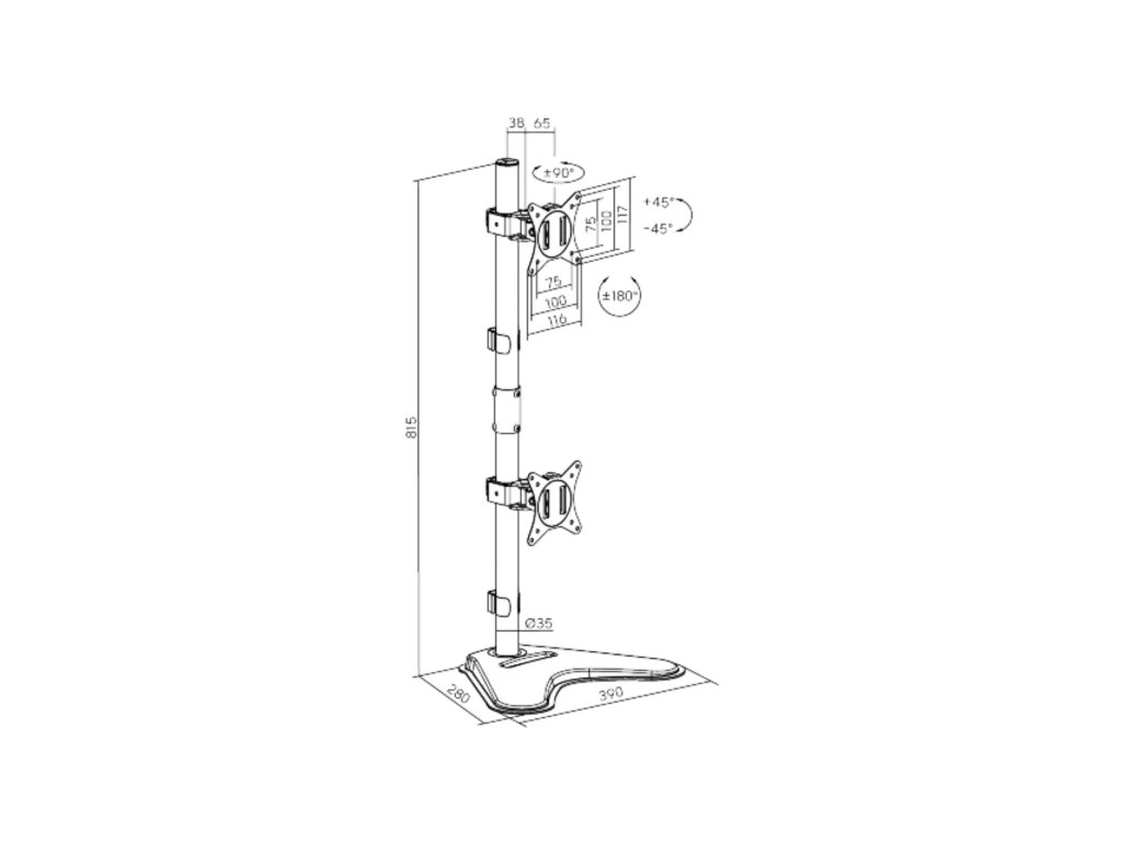 Držák monitoru Brateck LDT66-T02V dva kloubové úchyty nad sebou na tyčovém držáku samostatně stojící