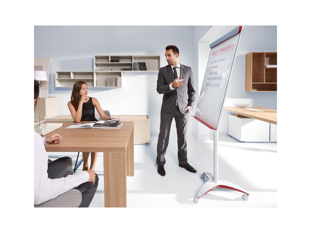 Magnetický flipchart s výsuvnými rameny, popisovatelný, výškově nastavitelný.