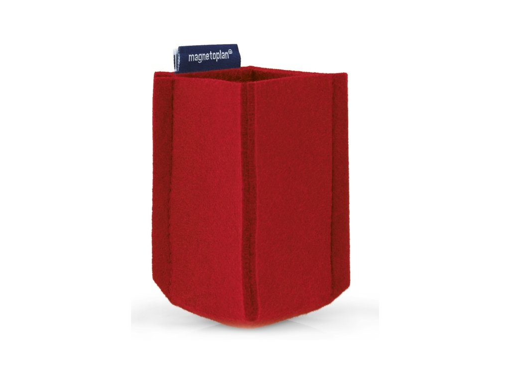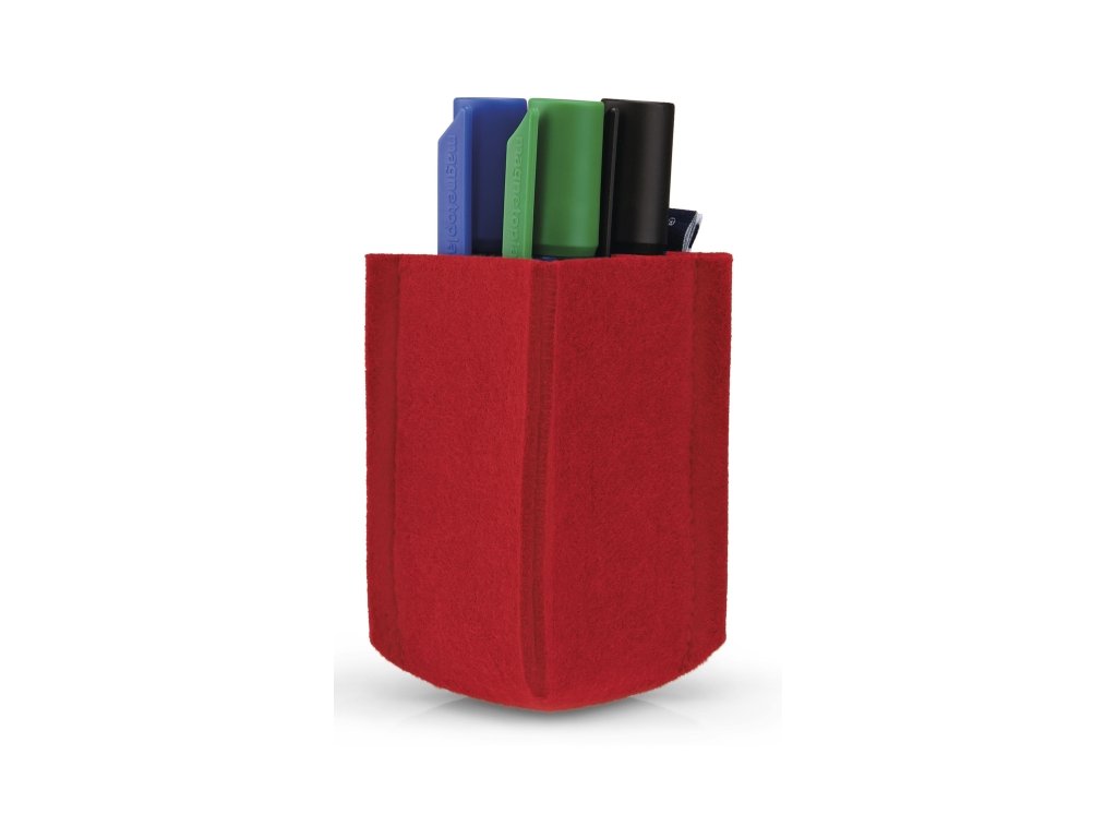Magnetický držák popisovačů magnetoTray ecoAware - inovace roku 2021. Díky integrovaným, mimořádně silným neodymovým magnetům drží perfektně na klasických magnetických bílých tabulích. Lze použít na skleněné magnetické tabule a všechny kovové plochy. Kromě své výjimečné funkčnosti dodá vaší tabuli vizuální zvýraznění. Vyroben z červené plsti rPET.Mimořádně silná lepicí síla!Stylový magnetický držák šetrný k životnímu prostředí. Je vyrobeny ze 100% recyklovaných PET lahví a zajišťuje minimalizaci vaší ekologické stopy.