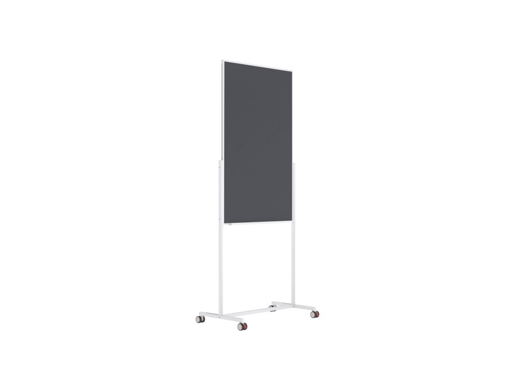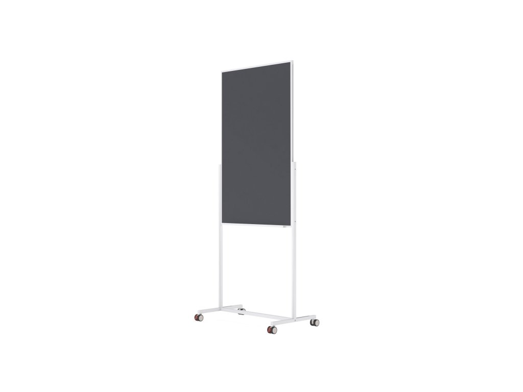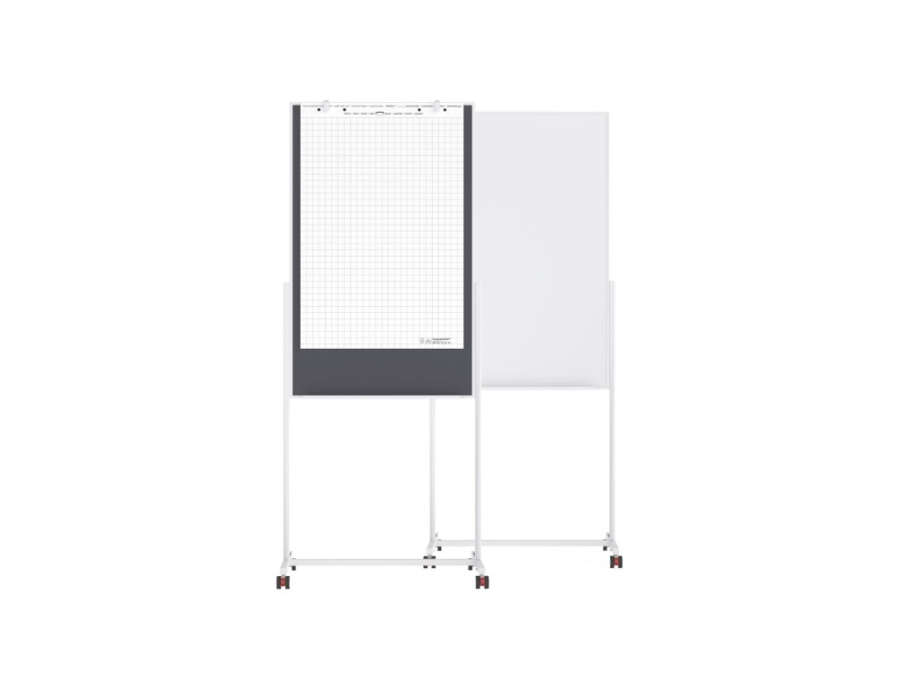 Multifunkční, prostorově úsporná mobilní tabule pro menší kanceláře a zasedací místnosti. Tato pojízdná tabule se hodí jako magnetická prezentační plocha na psaní, jako klasický flipchart a plstěná strana pro připínání prezentačních materiálů.Možnost využití 3-v-1: 1. Přední strana: bílá, popisovatelná, speciálně lakovaná magnetická tabule s odkládací poličkou. Tabule má kvalitní, hliníkový rám s bílým práškovým nástřikem.
