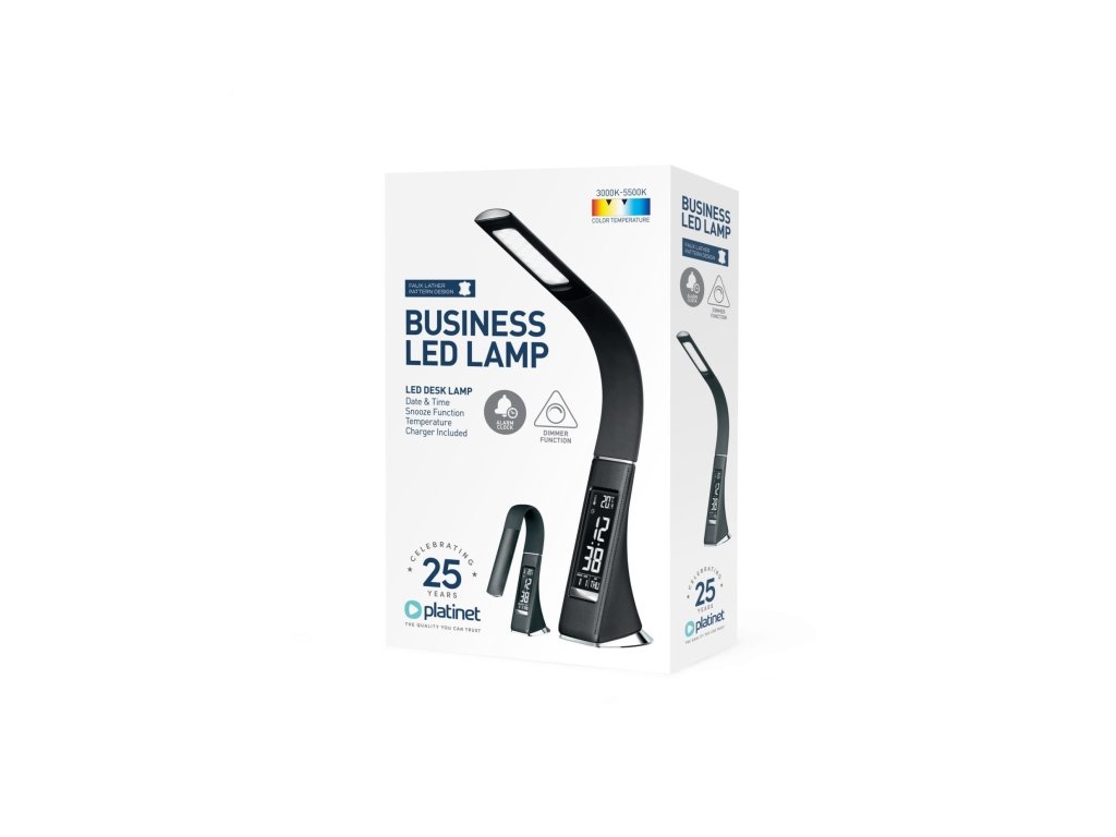 Platinet PDLU3B stolní LED lampa stmívatelná, flexibilní rameno, hodiny, černá