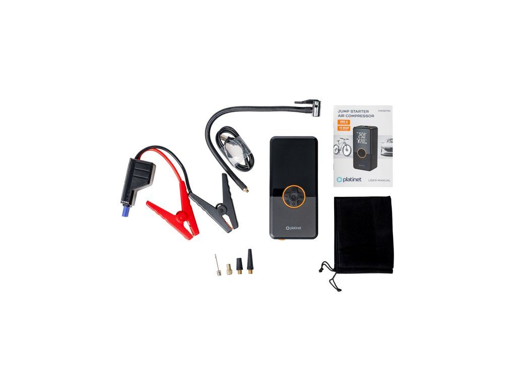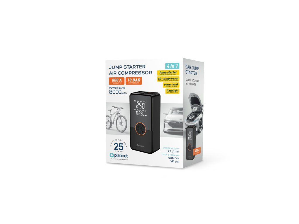 Platinet PMPBTPM Powerbanka 8000 mAh, multifunkční startovací nabíječka 800A, kompresor 22 l/min 10 BAR, černá