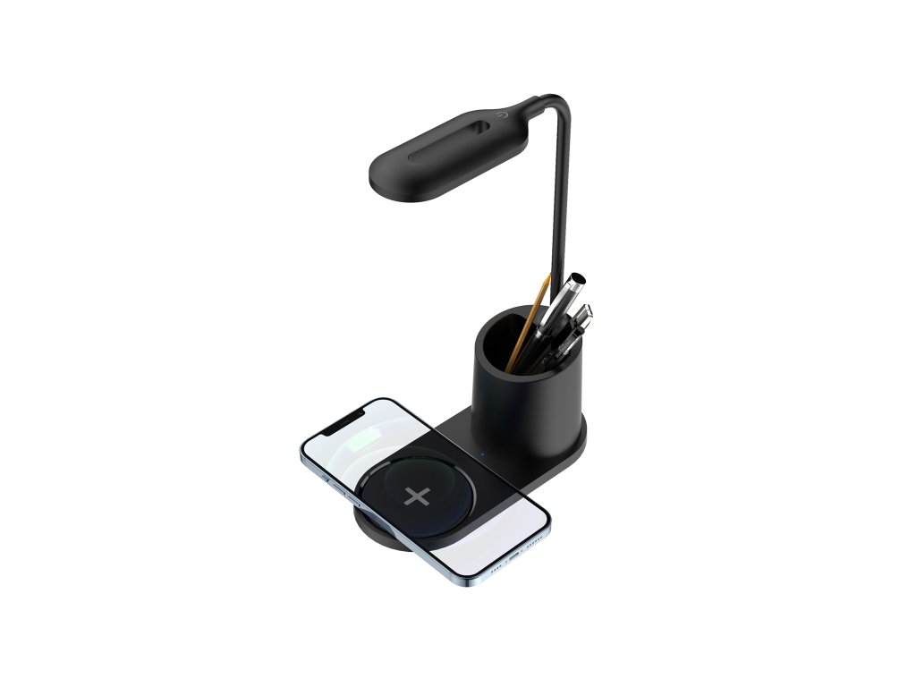 Stolní LED lampa PDL1930 je praktickým pomocníkem při práci, studium i relaxaci. Její kompaktní design a elegantní provedení se skvěle hodí na pracovní stůl, noční stolek nebo do domácí kanceláře. Tělo lampy je vyrobeno z odolného materiálu s hladkým povrchem a dostupné je v bílé a černé variantě.Lampa je vybavena úsporným LED zdrojem, který poskytuje neutrální bílé světlo v rozmezí 3700–4200 K. Tento rozsah teploty světla je ideální pro dlouhodobou činnost bez nadměrného namáhání očí – například při čtení nebo práci na počítači. Index podání barev (CRI) přesahuje hodnotu 80 Ra, což znamená, že barvy osvětlovaných předmětů působí přirozeně.Díky dotykovému ovládání si můžete plynule regulovat intenzitu světla podle aktuálních potřeb. Ohebný krk lampy umožňuje přesné nastavení směru svícení.Lampa navíc nabízí integrovanou bezdrátovou nabíječku telefonu, která pracuje na základě standardu Qi. Stačí položit smartphone na vyznačenou plochu základny a zařízení se začne nabíjet. Tato plocha je vybavena měkkou gumovou podložkou, aby se předešlo poškrábání mobilu.Napájení samotné lampy probíhá prostřednictvím USB kabelu – tedy z běžné USB nabíječky, powerbanky nebo počítače. (USB adaptér není součástí balení.)LED zdroj má životnost až 30 000 hodin.Lampa je vybavena vestavěnou LED technologií – není potřeba dokupovat žárovku.Lampa obsahuje integrovanou bezdrátovou nabíječku kompatibilní s Qi zařízeními.Možnost nastavení intenzity světla (stmívání).