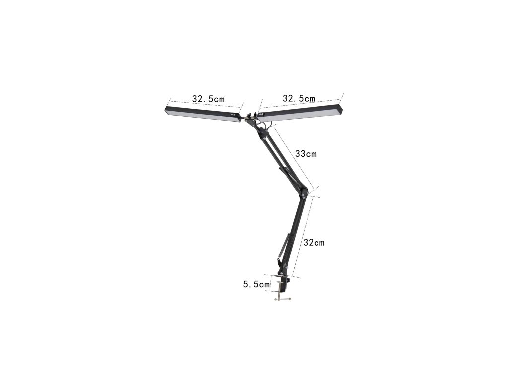 Model PDLD20 je stolní LED lampa navržená pro náročné uživatele, kteří hledají maximální výkon, flexibilitu a styl. Ideální volba pro pracovní stoly v kanceláři, designérská studia nebo domácí pracovny.Lampa je vybavena dvěma samostatnými rameny, z nichž každé je zakončeno 35 cm dlouhým světelným panelem. Ramena jsou plně nastavitelná díky sedmi kloubovým spojům, což umožňuje dokonalé nasměrování světla podle aktuálních potřeb – ať už pracujete, tvoříte, nebo čtete.Každý světelný panel obsahuje 80 LED diod a dosahuje výkonu 10 W při světelném toku 500 lumenů. Celkový světelný výkon lampy je tedy 1000 lm, což zajišťuje rovnoměrné a intenzivní osvětlení i velkých pracovních ploch. LED technologie s CRI vyšším než 80 zaručuje přirozené podání barev a šetrnost k očím, což oceníte zejména při dlouhodobé práci.Lze nastavit na 10 úrovní jasu a přepínat mezi třemi barevnými režimy světla – teplé, neutrální a studené bílé. To umožňuje přizpůsobit osvětlení aktuální činnosti nebo denní době.Délka napájecího kabelu je 130 cm, což poskytuje dostatečný prostor pro umístění lampy podle potřeby. Díky kombinované možnosti montáže si můžete zvolit buď pevné uchycení pomocí klipu na hranu stolu (do tloušťky 6 cm), nebo stabilní umístění na základnu. Obě varianty jsou součástí balení.Celkový vzhled lampy podtrhuje moderní černé provedení z kombinace kovu a plastu, provozní teplota je v rozmezí 0–40 °C a vyzařovací úhel činí 120°, což zajišťuje široký záběr světla bez ostrých stínů.Lampa je vybavena vestavěnou LED technologií – není potřeba dokupovat žárovku.Možnost nastavení intenzity světla (stmívání).