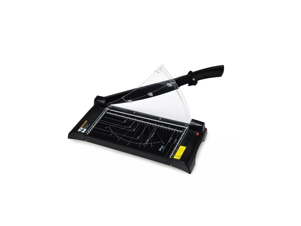 Páková řezačka vhodná pro řez papíru do formátu A4, která umožňuje řezat až 10 papírů zároveň. Pracovní deska obsahuje předkreslené formáty papíru A5-A4. Řezačka je opatřena bezpečnostním krytem nože.