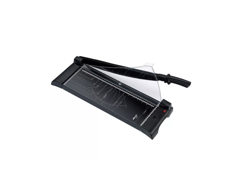 Páková řezačka vhodná pro řez papíru do formátu A3, která umožňuje řezat až 10 papírů zároveň. Pracovní deska obsahuje předkreslené formáty papíru A5-A3. Řezačka je opatřena bezpečnostním krytem nože.