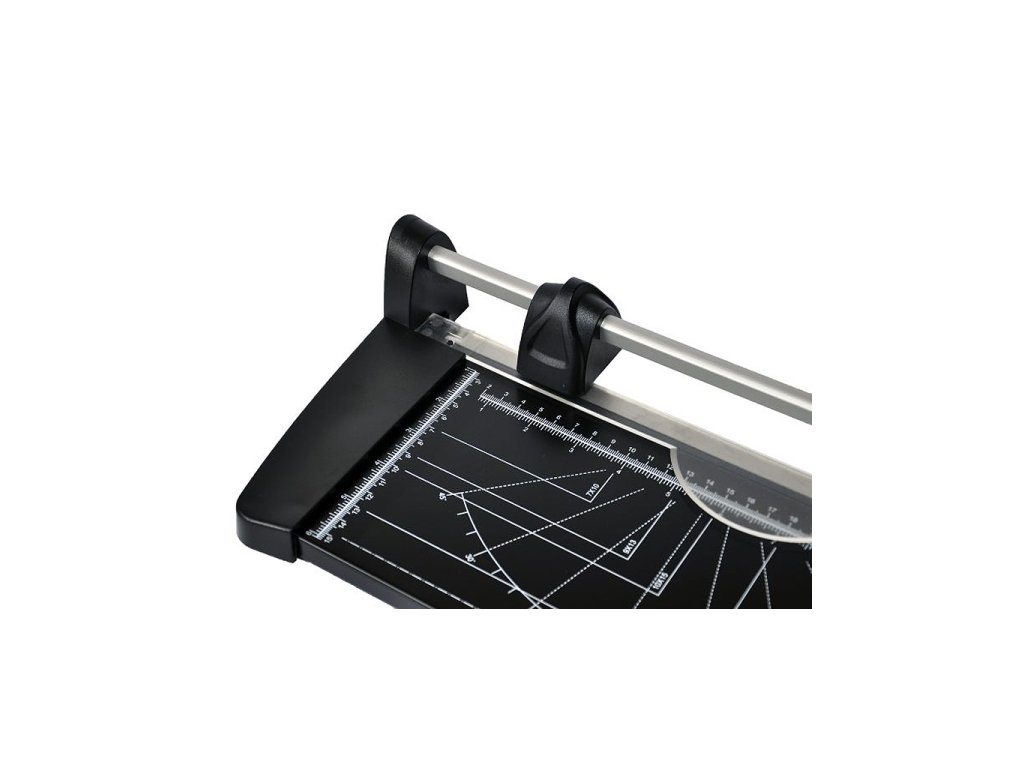 Model kolečkové řezačky KW Trio eco 318 je vhodný na papír do formátu A4 a poradí si až s 10 listy papíru zároveň. Na pracovní desce je umístěna bezpečnostní lišta, souběžná s přímkou řezu.