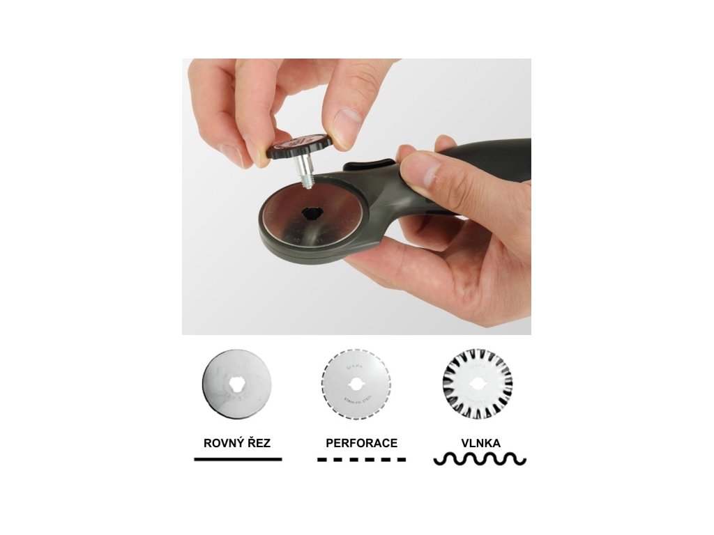 možnost dokoupení výměnné sady : rovný nůž, vlnka, perforace
