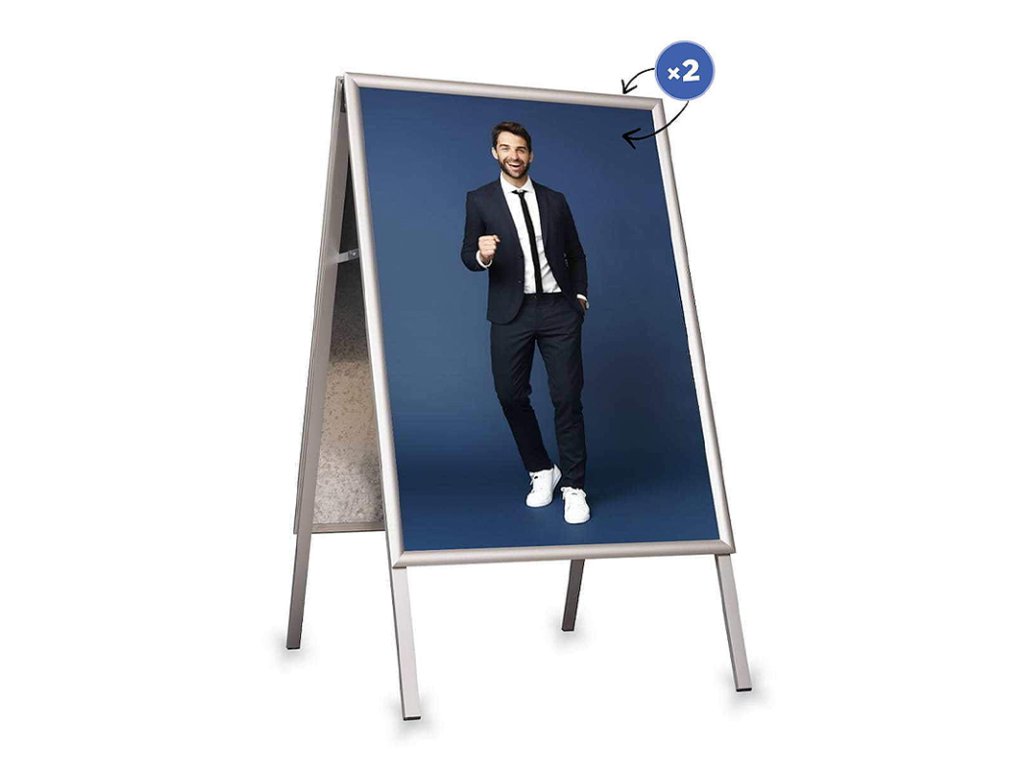 Reklamní A stojan s ostrými rohy a stříbrným rámem B2.