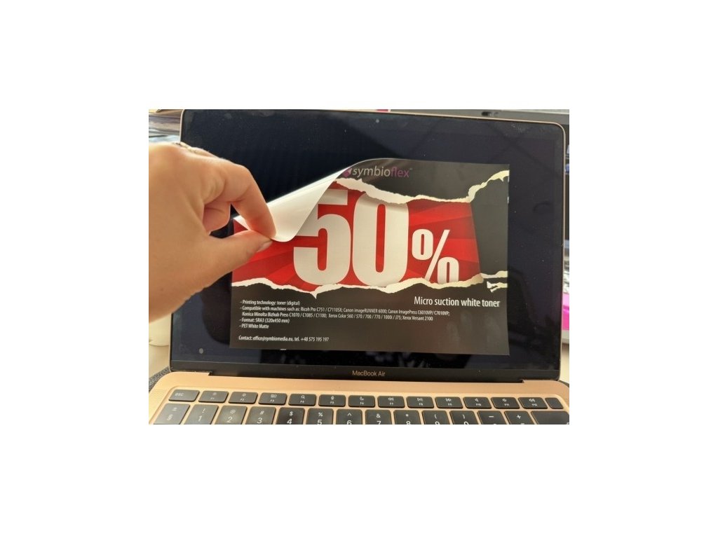 SymbioFlex Dots pro digitisk je vysoce přilnavá k různým typům hladkých povrchů, což znamená, že váš tisk zůstane ostrý a nepoškodí se ani při manipulaci s hotovým výrobkem.